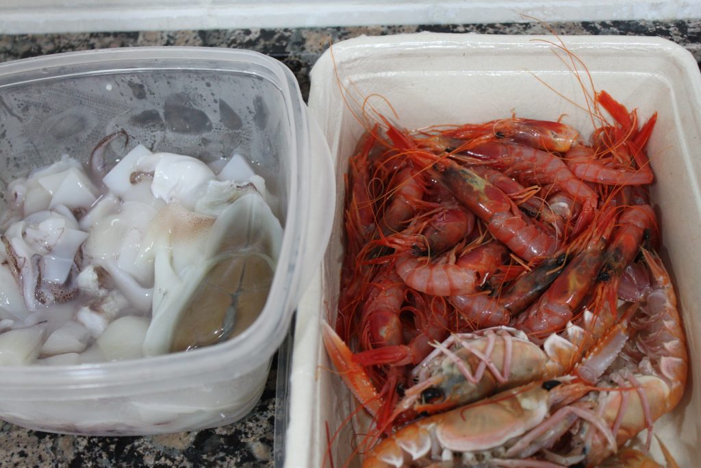 Cuando falten 8 minutos mas o menos añadimos, los mejillones, las almejas, las gambas y las cigalas.