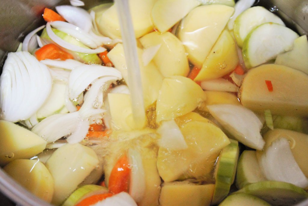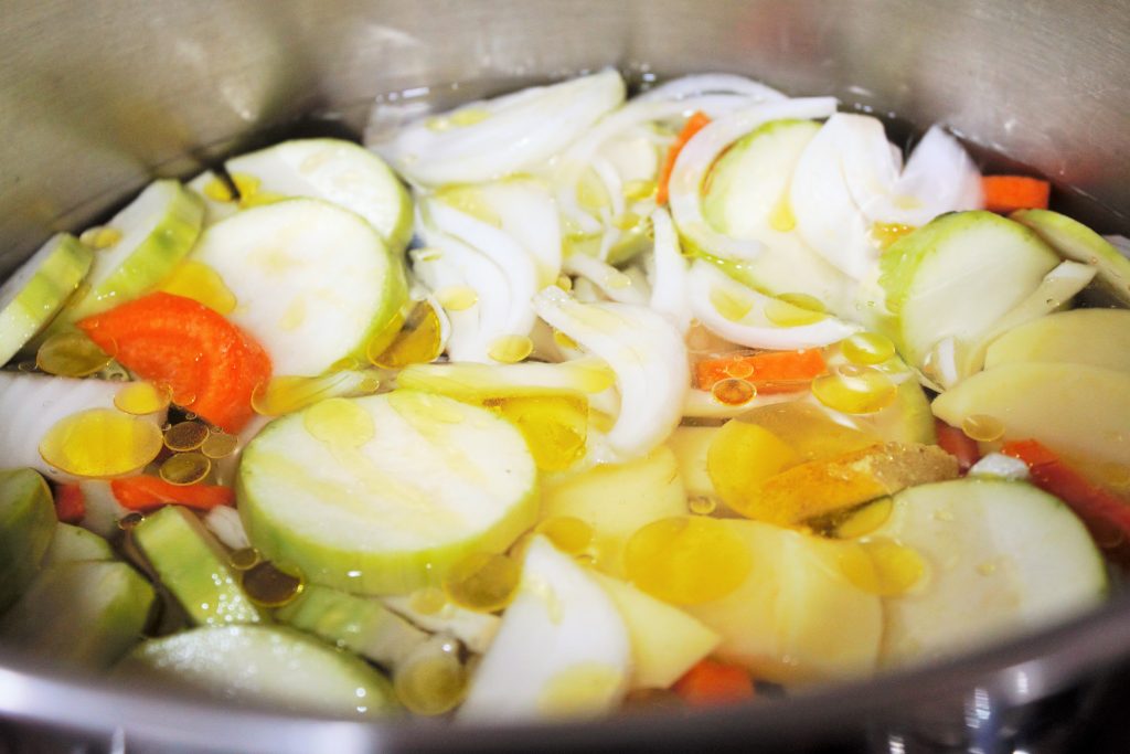 Añadimos un chorro de aceite, la pastilla de Avecrem, pimienta y cocinamos por 30 minutos.