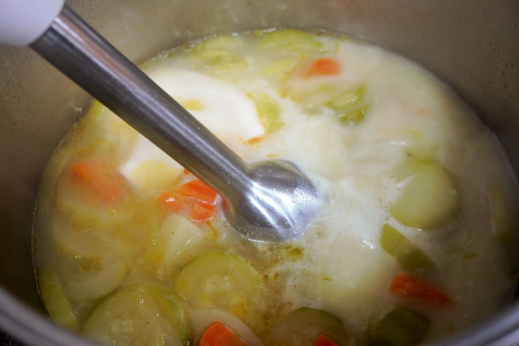 Paramos el fuego, añadimos las lonchas de queso y rectificamos de sal.