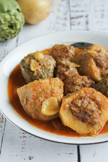 INGREDIENTES: 250grm carne picada ternera 250grm carne picada cerdo 2 dientes ajo Perejil 4 rebanadas miga pan Leche 1 huevo XL Harina 4 Patatas 1 …